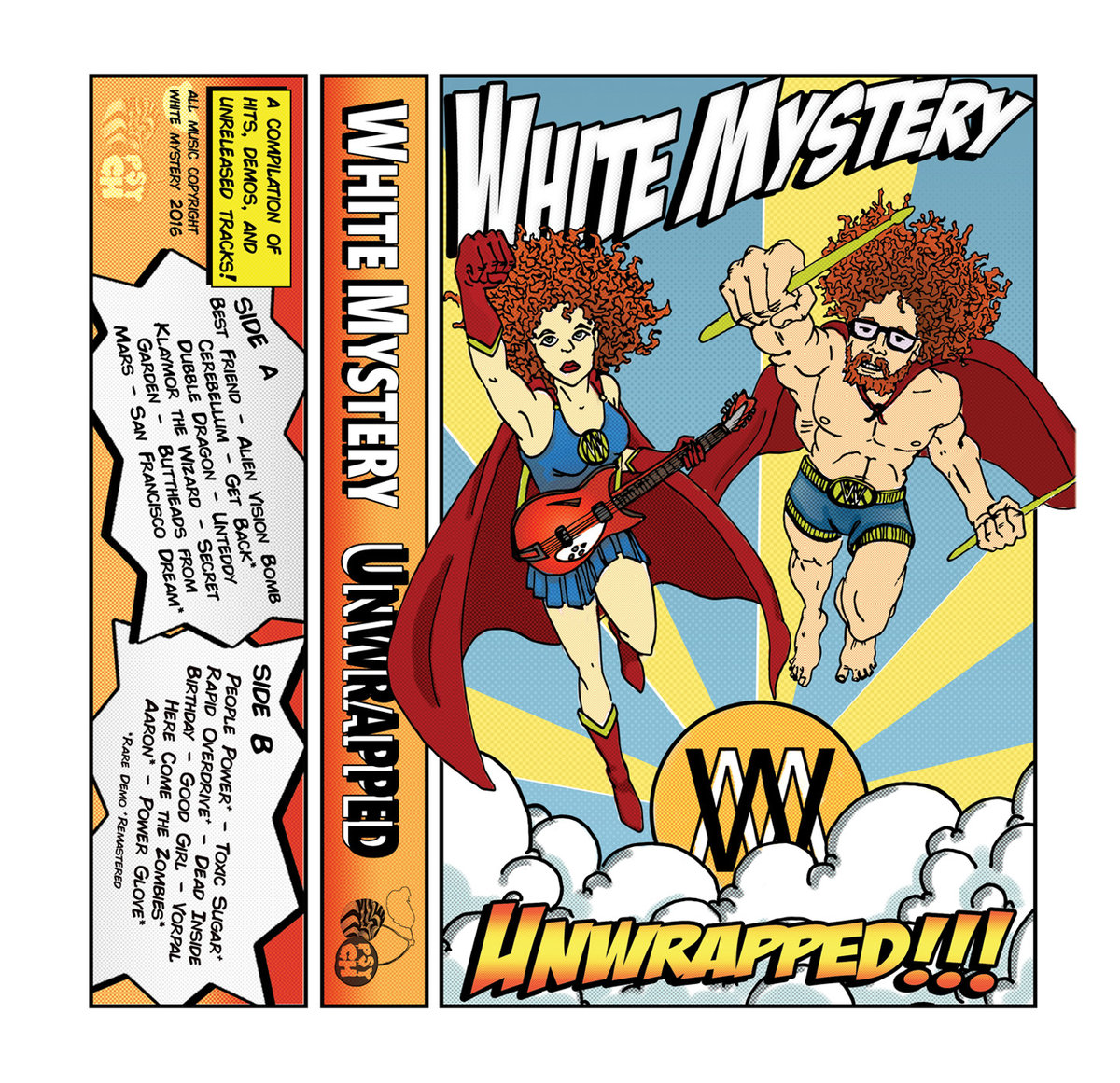White Mystery "Unwrapped" is a tape cassette compilation of all EIGHT ALBUMS so far, including sound effects from the feature length film THAT WAS AWESOME, and rare demos.