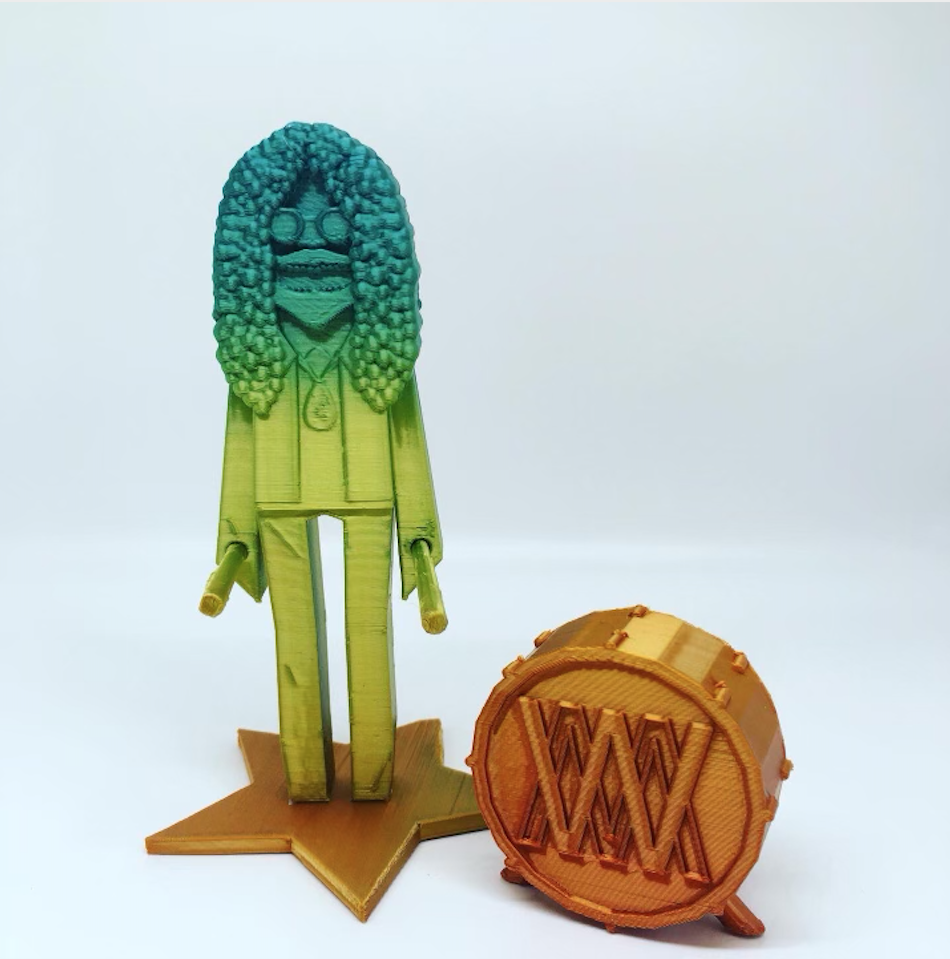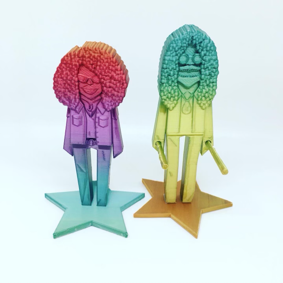 White Mystery "Funky Dolls" are 3-D printed artworks in collaboration with toy designer Aaron McNaught and Unatronics inventor Michael Una. Each order includes figurines of Miss Alex White and Francis White with their full suite of rock'n'roll accessories.