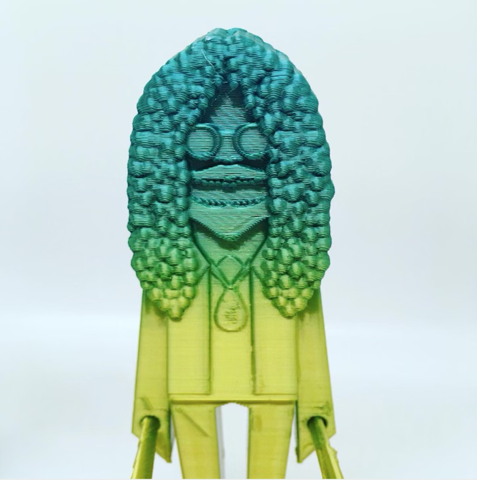 The 3-D printed figurines use a filament that feels like a metallic, hard plastic.